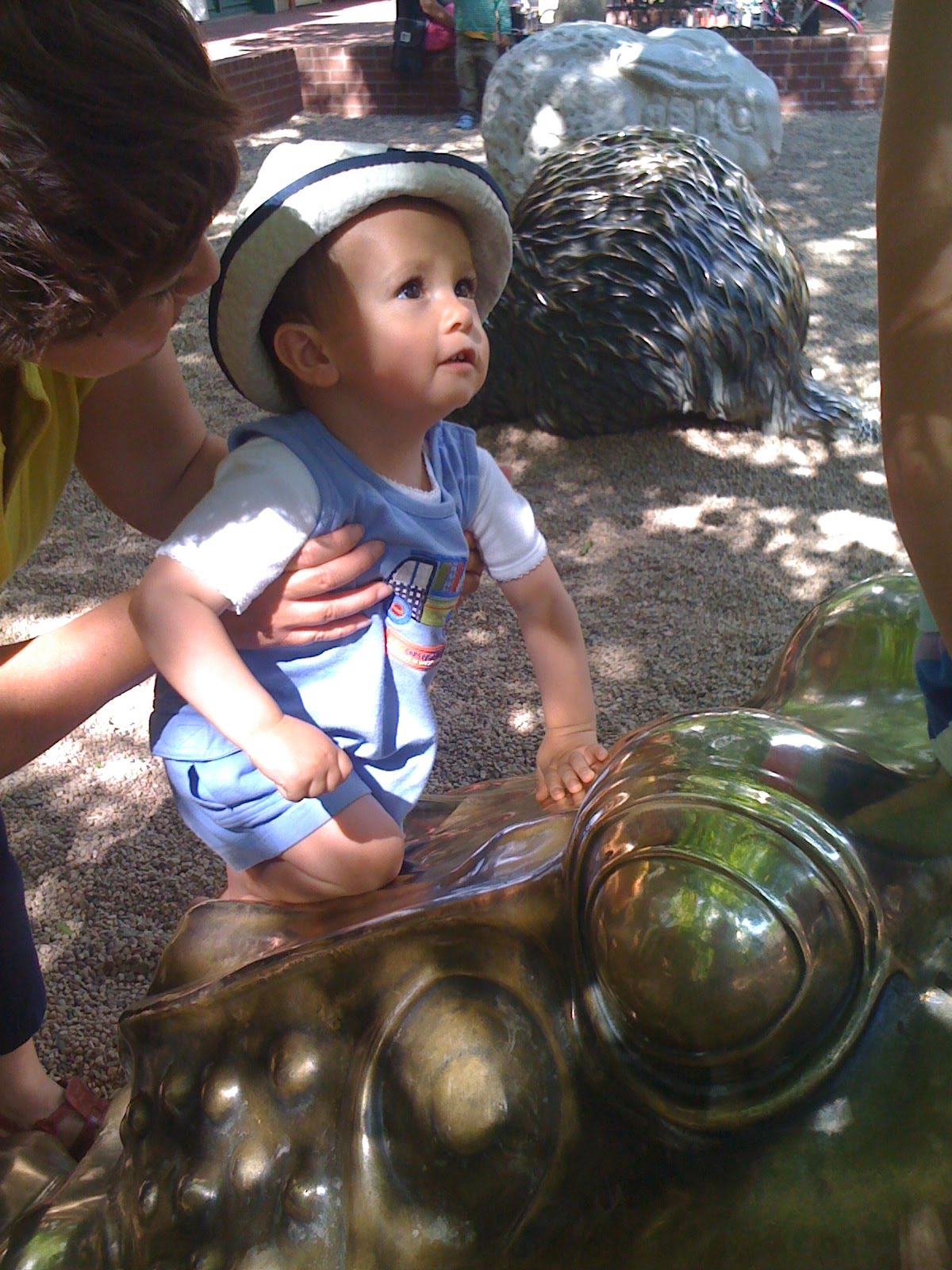 This morning I pushed Elliott 3.7 miles in the running stroller on pavement wearing the VFFs and in the afternoon I went out with Alex and we did 6.3 miles on trails that included several hills. He ended up quite a ways behind me at a couple of points and declared that he was out of his comfort zone...although he did leave me behind on the first three or four hill pushes. He hasn't been running that much, and has been doing shorter distances.